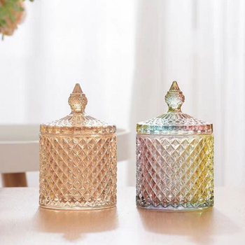8 oz 10 oz 12 oz एम्बर स्पष्ट लक्जरी खाली चाप नीचे ग्लास मोमबत्ती जार ढक्कन के बिना